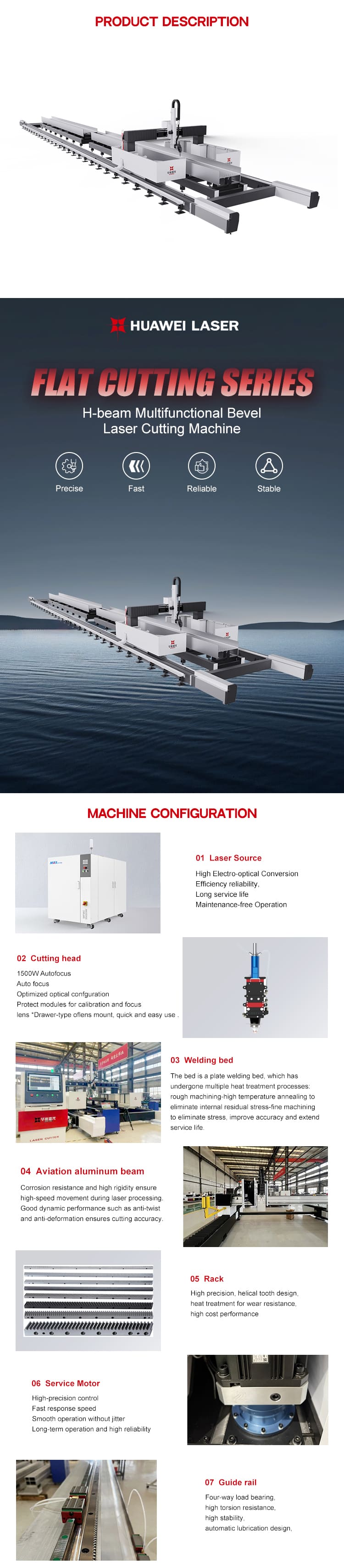 تقدم شركة Huawei LASER آلة القطع بالليزر ذات الشعاع H ثلاثية الأبعاد باستخدام الحاسب الآلي بقدرة 12000 وات لمعالجة الفولاذ المعدني، مما يوفر طاقة فائقة للصلب الهيكلي والعوارض والتصنيع عالي التحمل. بدعم من البحث والتطوير المتقدم والإنتاج على نطاق واسع والمخزون الموثوق به، فإننا نقدم أسعارًا مباشرة للمصنع وتسليمًا سريعًا بكميات كبيرة.
